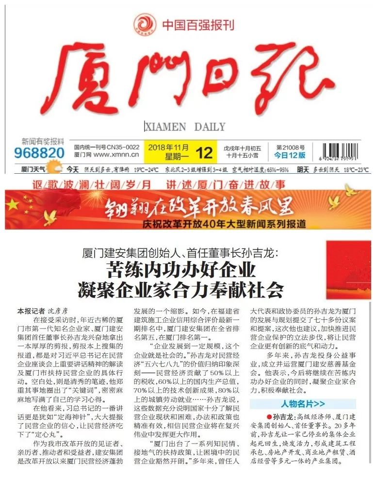 ϰ½üƽ×ÜÊé¼ÇÔÚÃñÓªÆóÒµ×ù̸»áÉÏÖØÒª½²»°Ðû²¼ºó£¬ÏÃÃÅÊÐίÊÐÕþ¸®½ôËæ×ųǫ̈ÁË¡¶¹ØÓÚÔö½øÃñÓª¾¼Ã½¡¿µÉú³¤µÄÈô¸ÉÒâ¼û¡·£¬¾Í×ÜÊé¼ÇÌá³öµÄÖ§³ÖÃñÓªÆóÒµÉú³¤µÄ¾«Éñ£¬ÊµÊ±Âäʵ¡£¡¶ÏÃÃÅÈÕ±¨¡·½üÈÕ¿ª±ÙÁË¡°Ú©¸è²¨ÌÎ׳À«ËêÔ ½²ÊöÏÃÃŷܽø¹ÊÊ¡±×¨À¸£¬ÍƳöÁË¡°åÛÓÎÔÚ¸ïпª·Å´º·çÀ¡ªÇì×£¸ïпª·ÅËÄÊ®ÖÜÄꡱ´óÐÍÐÂÎÅϵÁб¨µÀ¡£11ÔÂ12ÈÕ£¬¡¶ÏÃÃÅÈÕ±¨¡·A02°æÒÔ¡°¿àÁ·ÄÚ¹¦°ìÍׯóÒµ£¬Äý¾ÛÆóÒµ¼ÒÐÁ¦¹±Ï×Éç»á¡±ÎªÌâÄ¿¿¯µÇÁ˼ÇÕß¶ÔÐÂÀû18¼¯ÍÅÊ×´´ÈË¡¢Ê×Èζʳ¤¡¢ÐÂÀû18´ÈÉÆ»ù½ð»áÀíʳ¤ËJÁúµÄ²É·Ã±¨µÀ¡£