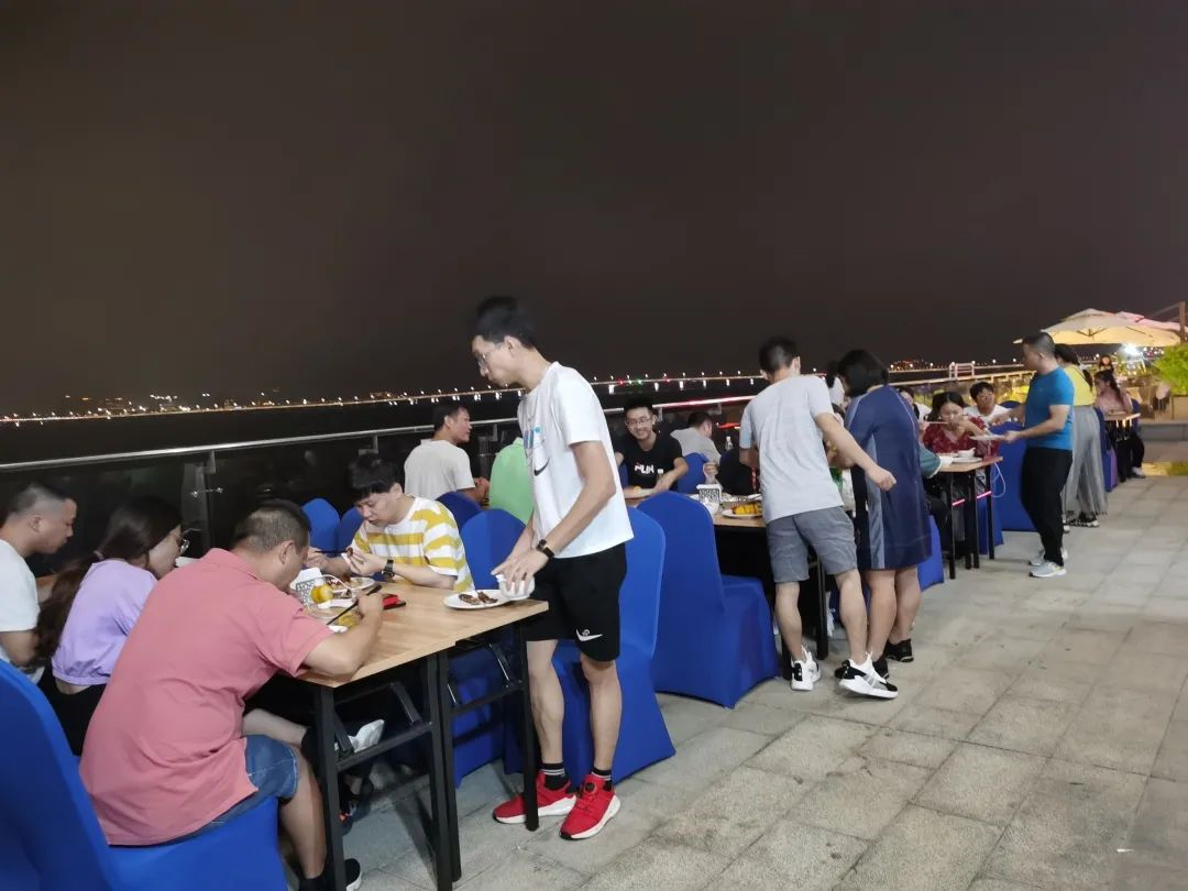 完成将近十公里的脚程,抵达预定的酒店,已是日暮时分,现场已经准备好食材,生好炉火,缕缕烟火最是能安慰疲倦的心,饥饿的胃。坐在酒店的露台上,远处是灯火阑珊,近处是把酒言欢。赏着景,吹着海风,烤串就啤酒,好不惬意。
